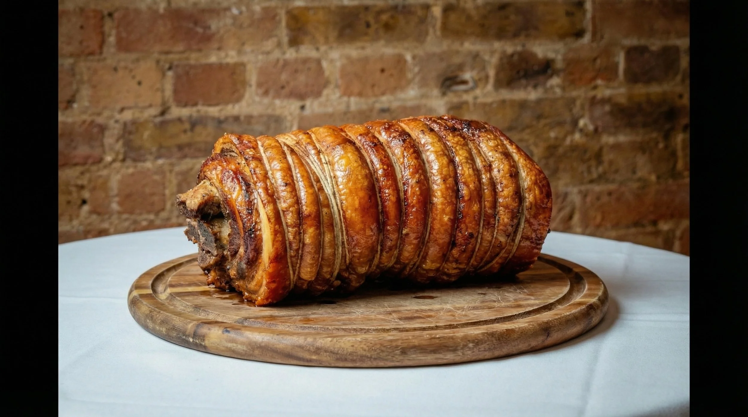 Porchetta aromatizzata — herb-roasted pork with pecorino fondue and cavolo nero